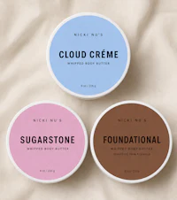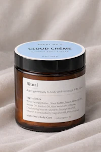 A soft, airy whipped body butter that melts effortlessly into the skin. Cloud Crème wraps the body in a warm, comforting blend of marshmallow, cream, and vanilla, creating a smooth, lightly sweet scent that feels both cozy and luxurious. Designed to nourish deeply while leaving the skin hydrated, soft, and glowing, this is your everyday indulgence.